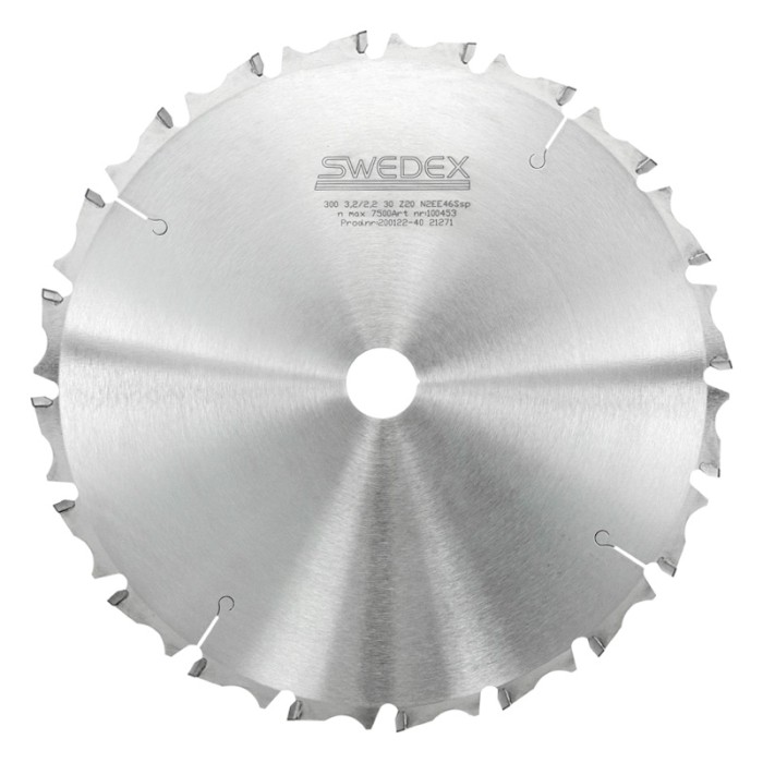 Wood cutting blade with nail resistant properties. Negative rake angle & teeth with special bevels. Good for timber with the possibility of embedded nails. e.g. pallet recycling. Good for crosscutting not so good for ripping.