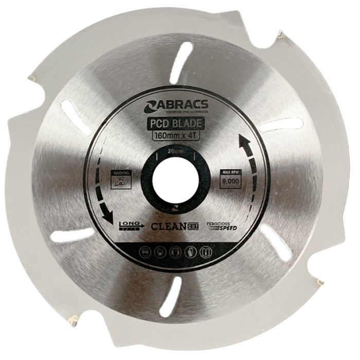 Polycrystalline diamond (PCD) saw blades designed for effortless cutting of fibre cement boards, MDF, GRP, composite decking and other specialist materials. Significantly longer life than traditional TCT blades, with faster, cleaner and more accurate cutting. Larger gullet design reduces dust exposure for user safety. Thin kerf improves cutting speeds and accuracy and reduces material waste. Laser cut blade includes cooling slots and precision ground cutting tips.
